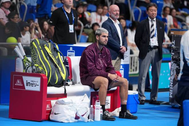 在刚刚结束的ATP500东京站比赛中,尽管世界第一排名的阿尔卡拉斯最终击败弗里茨成功夺冠,却也付出了脚踝受伤的代价。
