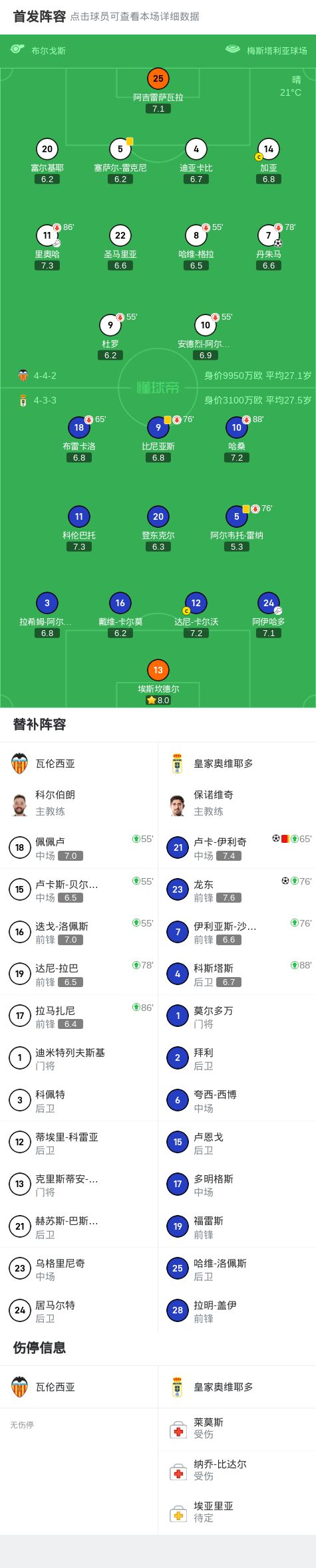 北京时间10月1日西班牙足球甲级联赛 联赛 第7轮,瓦伦西亚主场对阵皇家奥维耶多。瓦伦西亚丹朱马破门。皇家奥维耶多卢卡-伊利奇破门,龙东破门。最终比分瓦伦西亚 1-2 皇家奥维耶多。