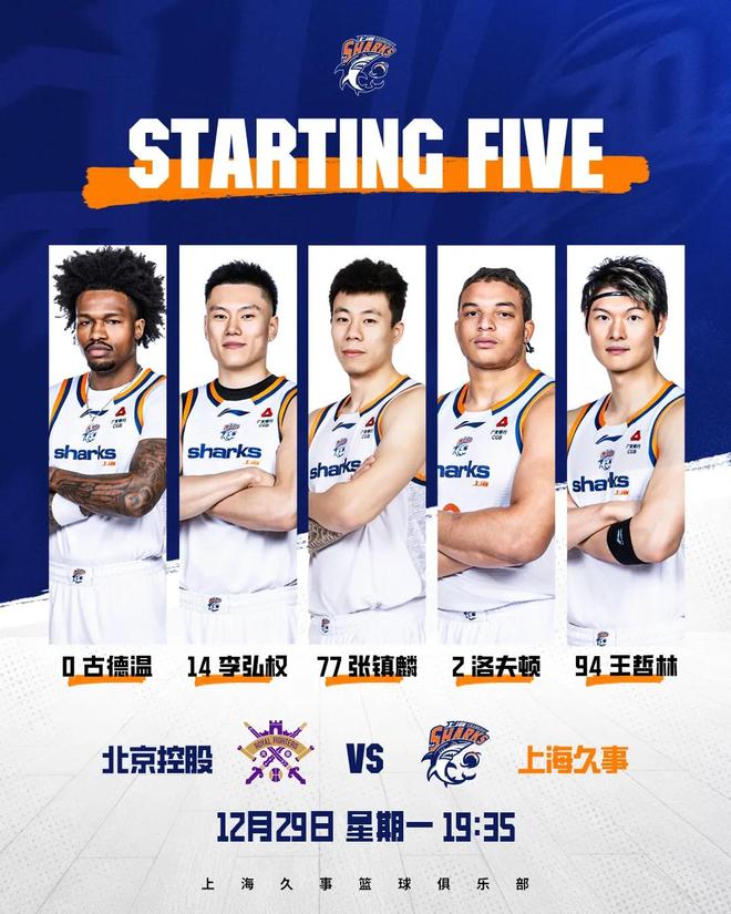 本场比赛,大鲨鱼派出王哲林、张镇麟、李弘权和双外援古德温、洛夫顿的先发阵容。