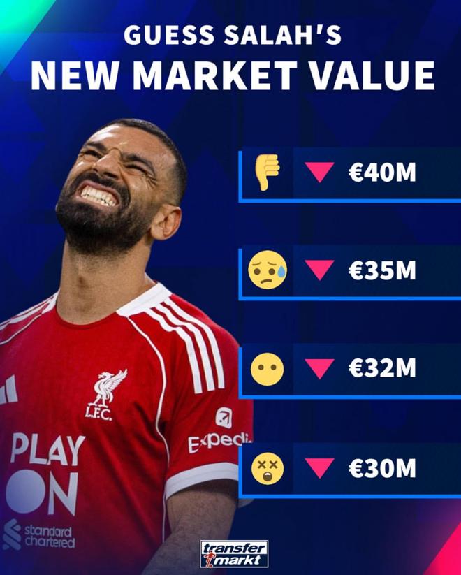 德转预热萨拉赫身价下跌:最高4000万欧,最低剩3000万欧