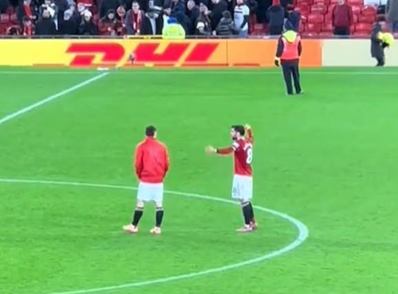 现场的画面可以看到,比赛结束后,在与乌加特和卡塞米罗交谈时,B费似乎挥舞着手臂,仿佛在表示曼联本可以做得更好。